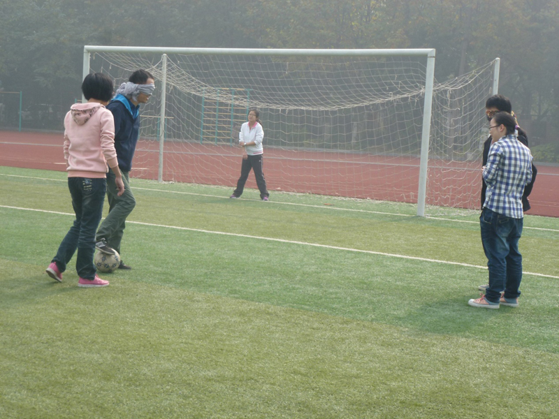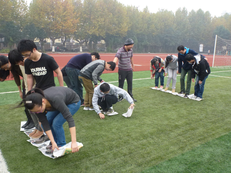 在第一场“三人四足”项目中,第二组同学一鸣惊人,夺得首次胜利。第二项的“搭桥过河”比赛中,该项目同时不仅要求同学们敏捷的身手,同时更是对团队合作的考验,几支队伍你追我赶,场面异常激烈,最终第三组一鼓作气,遥遥领先成为第一名。第三场“盲人足球”可谓是难度最大的项目,因场外同学可发出声音干扰指导者对踢球者的指示,气氛一时特别活跃,球场上的声音此起彼伏,比赛中,第三组表现原本最佳,但最后的临门一脚却与球门擦边而过,无奈再次开球,导致了成绩的不佳。第四项“解手圈”得到了同学们的积极参与,第二组最先成功解开,虽然名次已分,但在同学们的要求在,全班同学一起进行了一次大型的解手圈,在几次三番的尝试下最终成功的取得了属于所有人的胜利。最后一项“大接力”由单脚跳绳、足球接力、俯卧撑和跳大绳等若干项目串联而成,要求全组成员参加。队员们各展所长,一个项目接着一个项目,大家互相击掌,力争在最短时间内完整整个接力,可谓是整个活动的最高潮。最终综合各项比赛成绩,由第二组夺得第一,第一组获得第二。