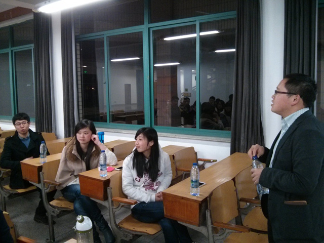 首先,班长介绍了请到的三位学长学姐基本信息,分别是06级学长彭传会,07级学姐潘文珏,07级学姐徐姗姗。随后开始了答疑解惑的环节。面对同学们的共同问题,学姐学长们根据自己的经历和体悟,提出了自己的看法。选择科室、导师方面,要充分结合自己的兴趣和对未来的计划两方面,要继续深读博士就要选择博士生导师,要回家乡就要选择有名望的导师,每个科室都有自己的优势和不足之处,要根据自身的情况来选择,如果没有想好,切忌盲目从众,定要考虑清楚再做选择;学习交流方面,国内交流和国外交流都能很好的开阔视野,体会到不同医院的医疗制度,医患关系和学习氛围,的确能给人带来一种不一样的感觉,同时还能欣赏到当地的美景美食。最后,开始了分组提问。就自己所遇到的情况,找相应的学姐或学长咨询,活动一直持续到10点半。