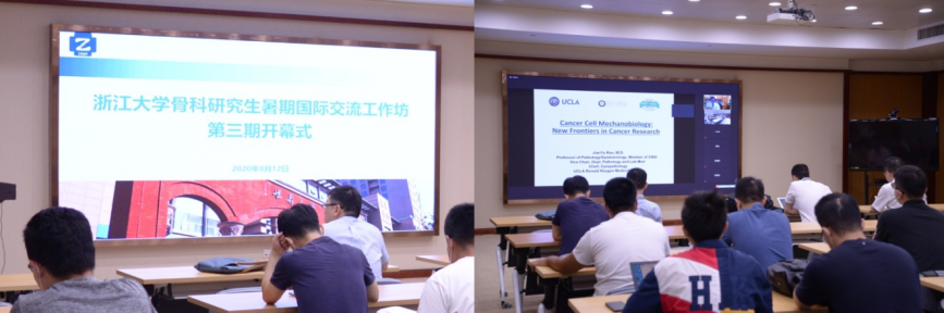 浙江大学骨科研究生暑期国际交流工作坊已于2020年7月27日、7月28日、8月12日、8月26日举办四次,完成浙江大学暑期国际交流安排的16 个课时,通过网络会议平台不出国就能与国外的教授面对面交流,与世界一流院校及科研机构开展实质性合作。