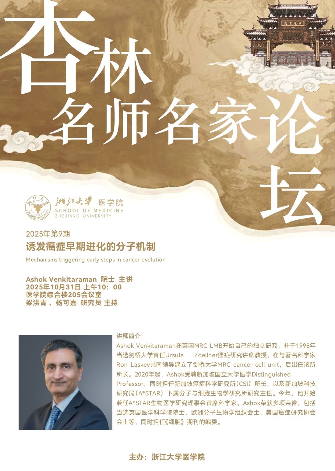 “杏林·名师名家论坛”— Ashok Venkitaraman 院士报告会